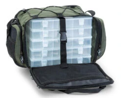 Die IRON CLAW Easy Gear Bag NX Serie umfasst vollwertigen Kunstködertaschen inkl. vielen zusätzlichen Außentaschen, Köderboxen und kleinen nützlichen Gadgets. So befindet sich z.B. ein Clip um Schnur zu schneiden im Lieferumfang der Taschen. Zudem werden vier Tackle Boxen mitgeliefert, welche sich auf der Frontseite entnehmen lassen. Beim großen Modell, der Easy Gear Bag L NX, ist auf der Frontseite noch eine Tasche für z.B. eine Pol-Brille aufgesetzt.