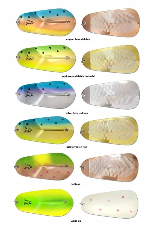 Der K1 Flasher kann sowohl ruhig als auch schnell geschleppt werden, sein idealer Einsatzbereich liegt zwischen 1,2 und 2,6 Knoten. Durch seine kreisenden Bewegungen, die er im Ganzen als auch um seine eigene Achse vollführt, ist er ein echter Hingucker für Lachs und Co. Ein Bewegungsmuster, das die Fische so noch nicht kennen, wird ihre Aufmerksamkeit gezielt auf den dahinter laufenden Köder lenken. Durch seine relativ großen Kreisbewegungen sollte der K1 Flasher nicht zu weit nach hinten ausgebracht werden. Als Abstand vom Köder zum Flasher empfehlen wir zwischen 0,70 bis 1,40 Metern. Einzusetzen mit Natur- und Kunstködern. Der Flasher hat eine Länge von ca. 20cm und ein Gewicht von 55g. Er ist in sechs fantstischen Farben verfügbar. Die Rückseite der Flasher ist abhänig von der Flasherfarbe.