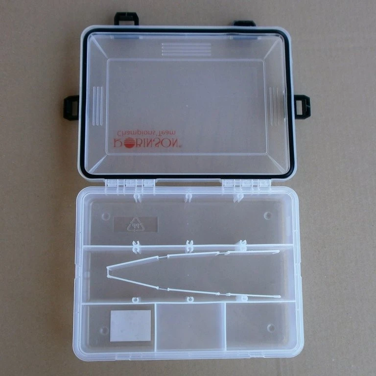 Diese Zubhörbox hat eine Größe von 23×17,5x5cm und verfügt über frei einteilbare Fächer. Ein Dichtungsgummi am Deckelrand sorgt für höhere Wasserdichtigkeit.