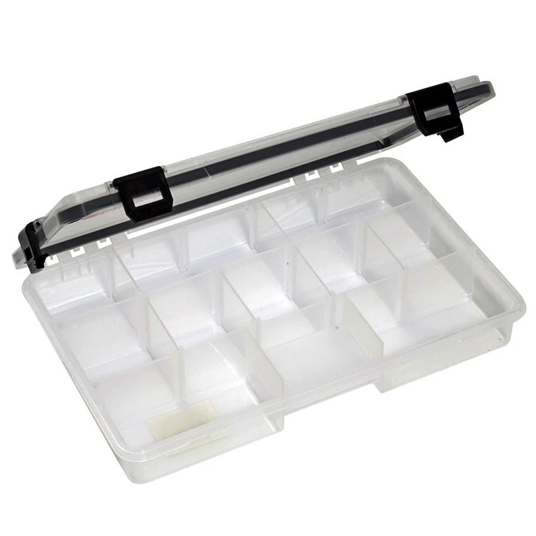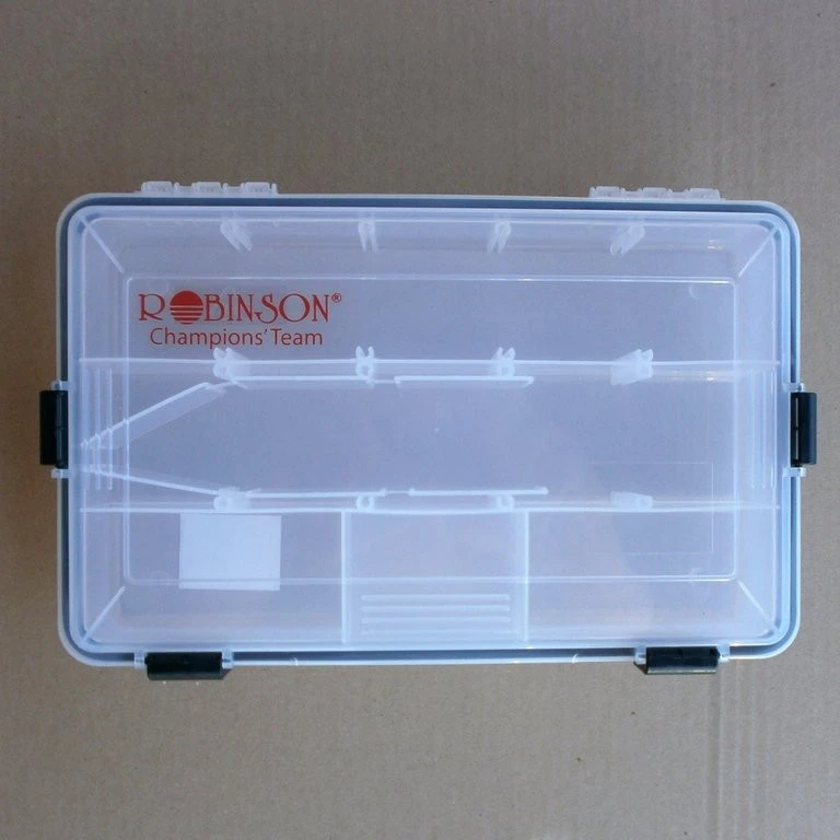 Diese Zubhörbox hat eine Größe von 27,5x18x5cm und verfügt über frei einteilbare Fächer. Ein Dichtungsgummi am Deckelrand sorgt für höhere Wasserdichtigkeit.