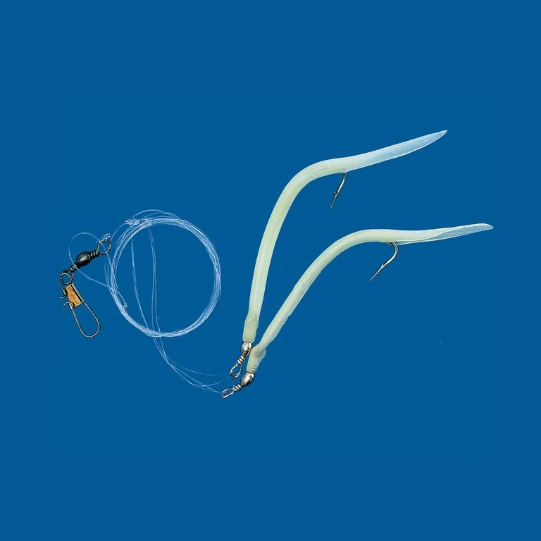 Dieses Vorfach besteht aus zwei Gummi-Makks, die an einer starken 0,80mm monofilen Schnur befestigt sind. Es gibt dieses Rig mit fluofarbenen und blau-fluo Makks in den Größen 4/0, 6/0 und 8/0.