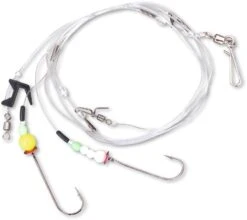 Dieses Standard Plattfischvorfach ist speziell für das Angeln vom Boot konzipiert. Es gibt zwei verschiedene Varianten mit Hakengröße 4 und 6. Die Hauptschnur hat eine Stärke von 0,60mm und die Seitenarmen von 0,40mm. Das Vorfach besitzt 3 Haken und ist 120cm lang.